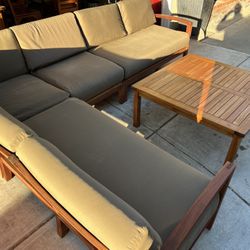 Crate & Barrel Outdoor Teak L-Shaped Sofa Set With Cushions And Teak Coffee Table $1,750Concord, CA