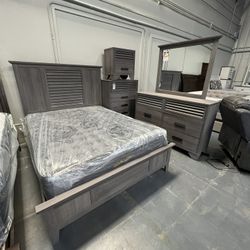 New 4pc Queen Bedroom Set Queen Bedframe Dresser Mirror Nightstand $699Pittsburg, CA
