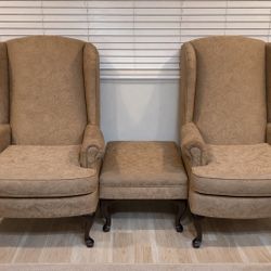 2 Wingback Accent Chairs + Ottoman – Solid Wood, Classic Style$250American Canyon, CA