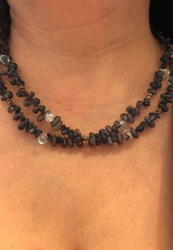 Rough blue sapphire and glass carved pendant necklace 19’$60Suisun City, CA