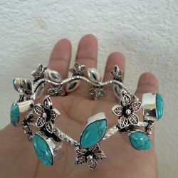 Sterling silver cuff bracelet teardrop shaped turquoise stones$150Sacramento, CA