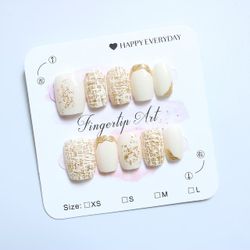 Elegant Gold - Accented White Press - on Nails | Chic Textured Design$27San Francisco, CA
