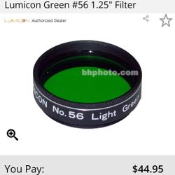 Lumicon New #56 Green Filter 1 25" Diameter Mounted x 1.25" Thread. P/N: LF1060 Made in the USA. Msrp $44$20American Canyon, CA