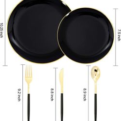 150PCS Black & Gold Plastic Dinnerware Set – 30 Dinner & Salad Plates, Gold Cutlery$33Concord, CA