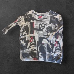 Black & white newspaper print sweater with red accents #goth #punkrock$20San Francisco, CA