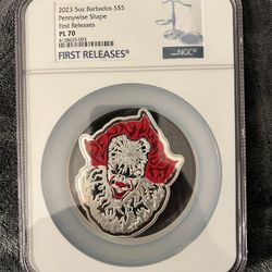 Pennywise 2023 Barbados 5oz Silver Proof Like Coin S$5 NGC PL 70 First Releases $580Castro Valley, CA
