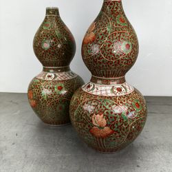 Pair Of Chinese Famille Rose Porcelain Garlic Gourd Shaped Vases Xuande Mark$800Concord, CA