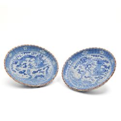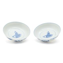 Pair of Chinese Blue and White Dishes Kangxi Mark Qing Style Scholars Imagery$750Concord, CA