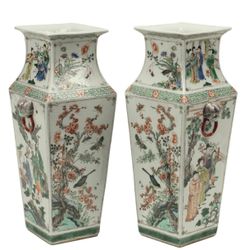 Pair of Square Chinese Polychrome Porcelain Vases Qing Dynasty Republic Kangxi $850Concord, CA