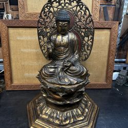 Antique Japanese Edo Period Carved Wood Shrine Buddha Seated On Lotus Flower 26”$3,250Concord, CA