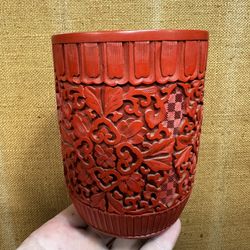 Antique Chinese Scholars Carved Cinnabar Brush Pot Feng Shui Republic Period$125Concord, CA