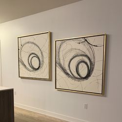 Large 47”x47” Abstract Black & White Swirl Canvas Art Set (2) – Gold Wooden Frame – Modern Contemporary Wall Decor$500San Francisco, CA