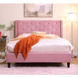 Queen Size Pink Suede Platform Bed$150Oakland, CA
