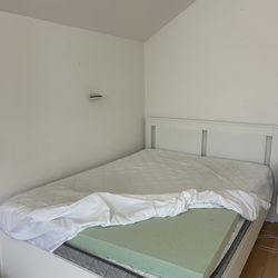 Queen size solid wood bed frame and mattress$300San Leandro, CA