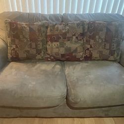 Dark Tan Suede Loveseat Couch w/ Patterned Pillows$40Suisun City, CA