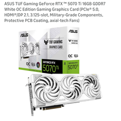 ASUS TUF 5070 Ti OC white edition GPU$1,250Fairfield, CA