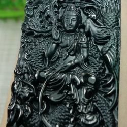 Burmese icy Black type A Jadeite Jade Pendant Lucky Buddha-Lotus. $380Fairfield, CA