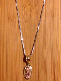 14k solid gold Virgin Mary pendant chain 1.24mm long 18" grams 2.5$130Richmond, CA