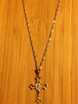 14k solid gold Jesus on cross pendant chain 1mm long 18" grams 2$110Richmond, CA