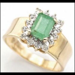 14kt Anillo De Oro Sólido Con Esmeralda Natural Y Diamantes 💎 Size 7.5$650Richmond, CA