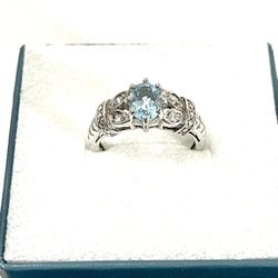 New One Of A Kind Oval Shaped Aquamarine & 4 Cubic Zirconia Cz Diamonds Set In A .925 Silver Ring. Size 9.$75Vacaville, CA