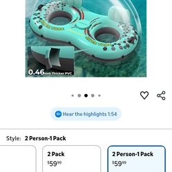 2-Person Inflatable River Tube, Heavy Duty Tube Float for River Pool Lake Beach w/Built-in Cooler & Cup Holders, Ergonomic Backrest, Durable Handles &$40Paramount, CA