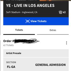 Ye Live Floor Tickets X2$650Los Angeles, CA