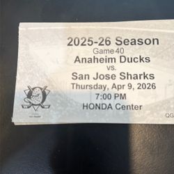Anahim ducks Tickets April 9 Vs san Jose Sharks $320Fullerton, CA