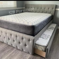 Full Twin Gray Trundle Bed With Ortho Mattress $479Los Angeles, CA
