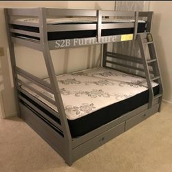New Twin_full Solid Wood Bunkbed W Orthopedic Mattress Included $649Lawndale, CA