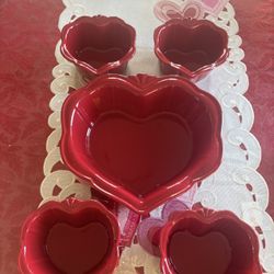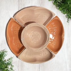 Vintage MCM Maurice of CA Pottery Serving Dish Chip Dip 5 Piece Coral Rose S-14$25El Segundo, CA