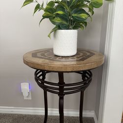 Solid stone side table with iron legs$125Long Beach, CA