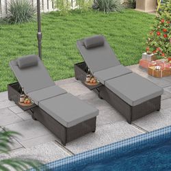 PE Wicker Chaise Lounge Chairs Set of 1. Adjustable 5 Position Outside Rattanr Patio Pool Chair with Headrest,Cushion and Storage Rack for Poolside B$95Claremont, CA