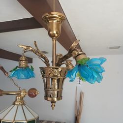 brass chandelier with blue and green Murano glass floral shades$400Los Angeles, CA