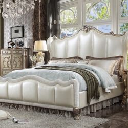QUEEN BED FRAME PEARL WHITE SYNTHETIC LEATHER & GOLD PATINA FINISH (AC27814) $1799 FREE LOCAL DELIVERY $1,799Pomona, CA
