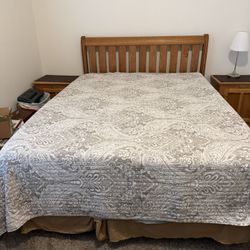 Queen sized bed - oak headboard, frame and mattress with low profile box spring. $100Seal Beach, CA