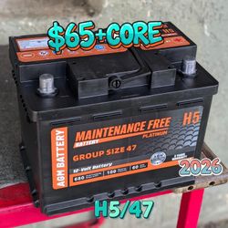 AGM Car Battery Group Size 47/H5$65Los Angeles, CA
