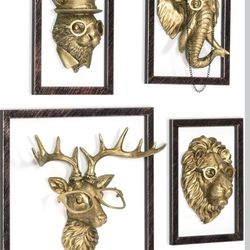 4PK Animal Head Wall Decor with Metal Frame Flower Vase Gold vintage Wall Sculpture $50Carson, CA