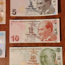 Turkey 5 Bills Lira Banknotes Currency $30Glendale, CA