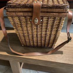 Vintage Wicker Picnic Basket with Shoulder Strap & Accessories$40Downey, CA