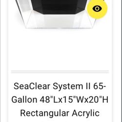 65-Gallon Acrylic Aquarium Wet/Dry Bio-ball Filtration, SeaClear System II (48"L x 15"W x 20"H) Salt/Fresh Just Add Water And Fish Was$200Pasadena, CA