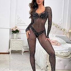 Womens Sexy Fishnet Bodystocking Sparkle Rhinestone Mesh Tights One Piece Teddy Lingerie$15Whittier, CA