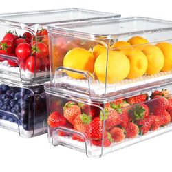4-Pack Refrigerator Drawer Organizer Bins, Clear Stackable Pull Out Fridge Organizers and Storage Container, with Strainer Layer for Fruits, Vegetable$25Montebello, CA