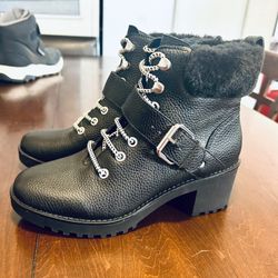 Saks Fifth Avenue "Harley" Leather Lace up Buckle Zip Black Boots Size 6$30Hacienda Heights, CA