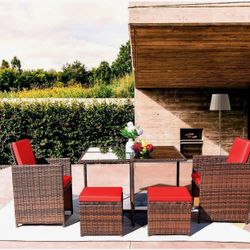 New 5 Pieces Patio Sets Outdoor Wicker Conversation Sets Rattan Chairs with Ottomans and Tempered Glass Table(Beige) New in box LCRF2C2F7, LCRF2T Si$230La Mirada, CA