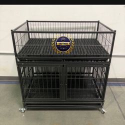 (NEW) $370 (Set of 2) Stackable Dog Cage 41x31x65” Heavy Duty Kennel w/ Plastic Tray $370El Monte, CA