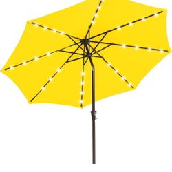 Yellow 9FT Outdoor Patio Umbrella with Solar Lights LED Lighted Pool Umbrella with Tilt & Crank Outdoor Table Umbrellas for Deck No Top Solar Panel$50Whittier, CA