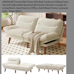 AMADA 66"Convertible Futon Sofa Bed, Corduroy Folding Futon Set with Adjustable Backrest &Armrests, Recliner Lounge for Living Room, Apartment or Offi$100Hawthorne, CA