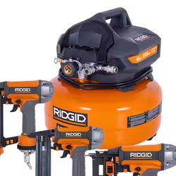 A000655A RIDGID 6 Gal. 150 PSI Electric Air Compressor with 10 ft. Hose, 18GA Brad Nailer, 16GA Finish Nailer and 18GA Finish Stapler$270Los Angeles, CA