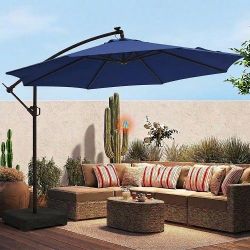 New In Box 10 Feet Offset Cantilever Outdoor Patio Tilt Crank Umbrella Red Blue Or Beige Color With Cross Stand Require Weight $65Covina, CA